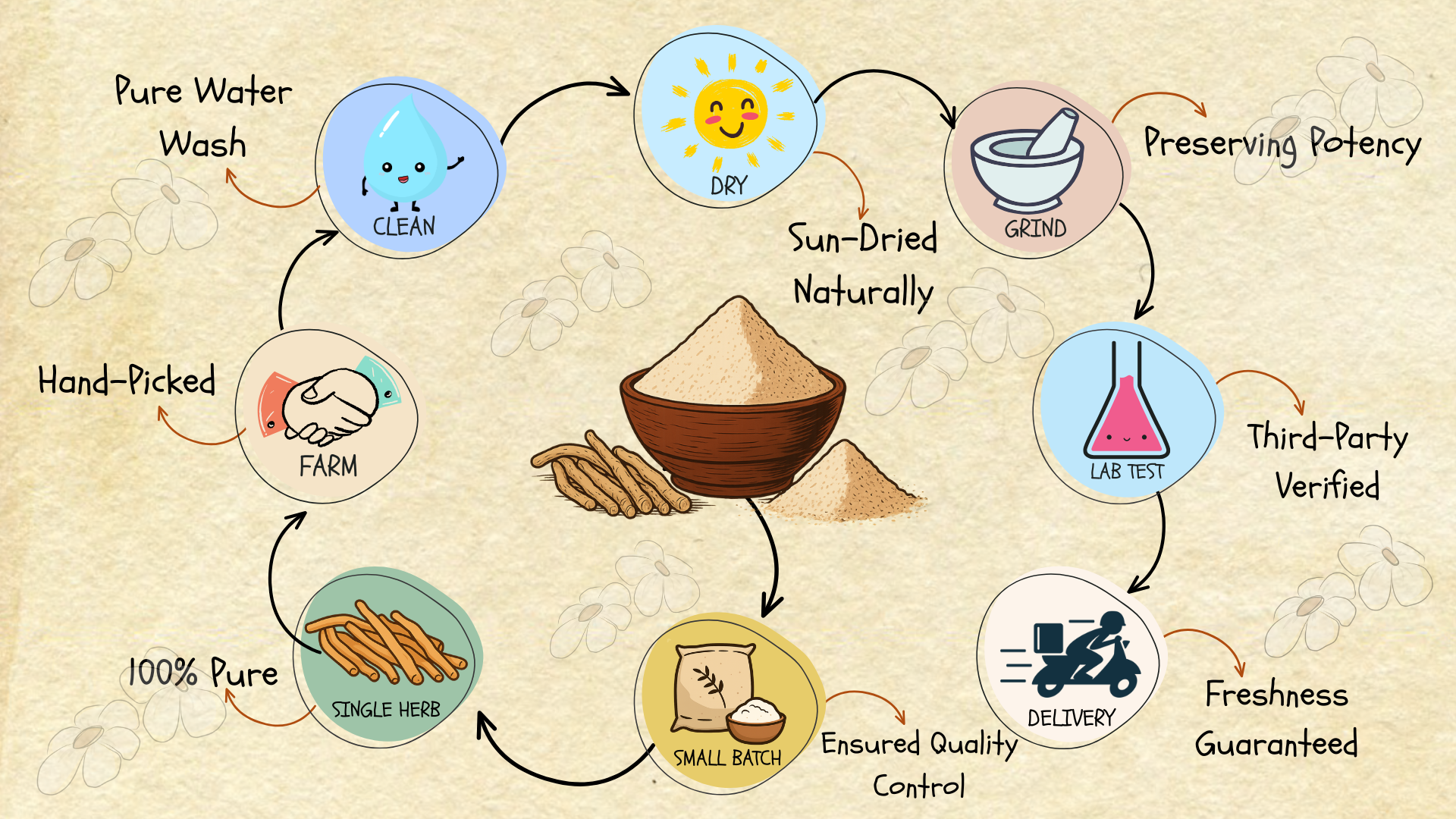 Hand-cleaned, sun-dried, and slow-ground to preserve nutrients.